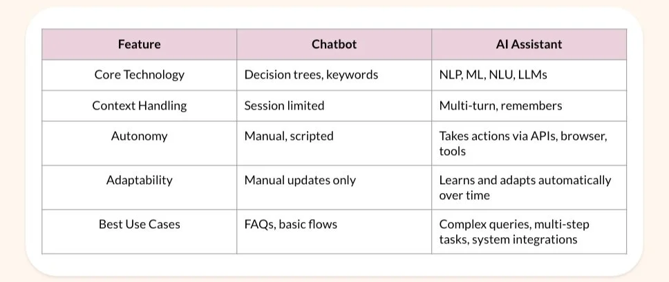 AI assistants can go further. Some can pull data from connected systems, route tasks, or trigger workflows. They don’t just respond. They actually help get things done.